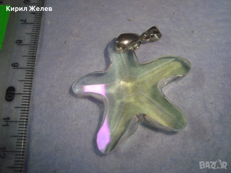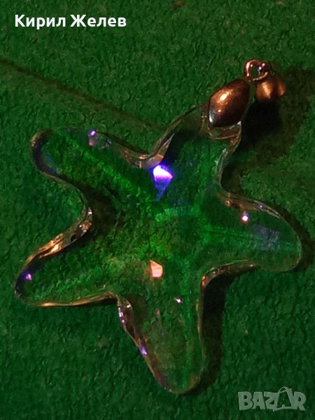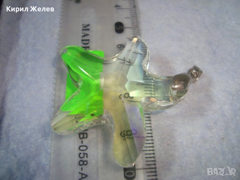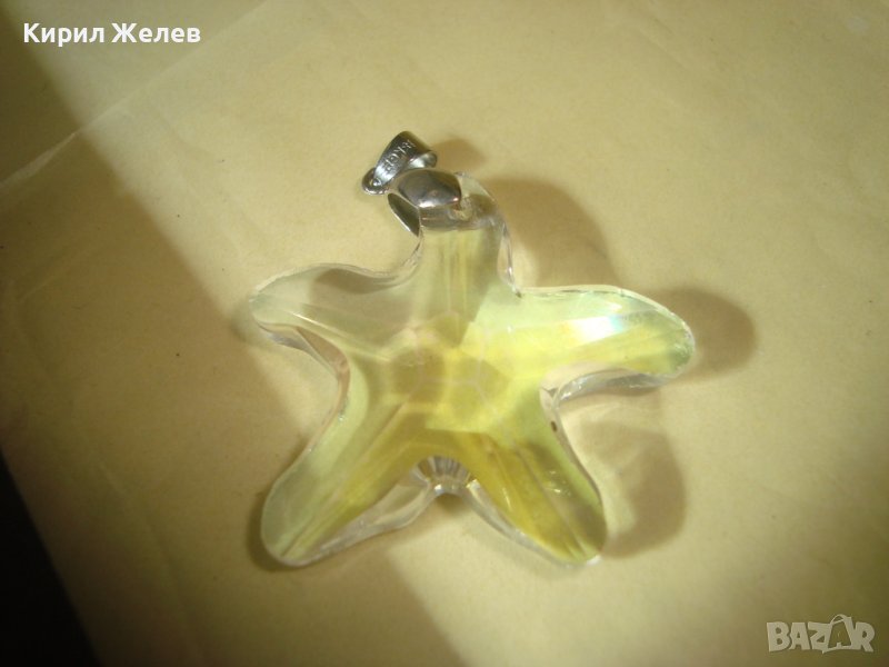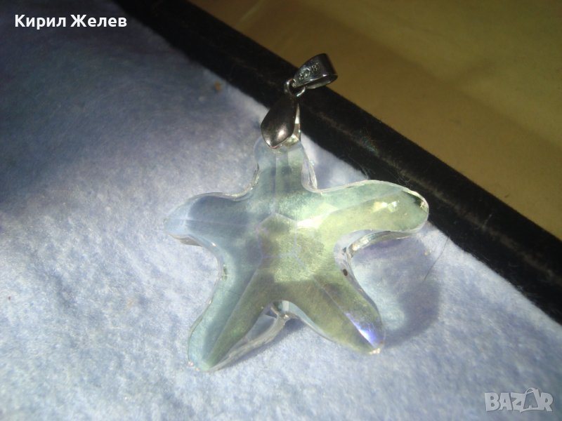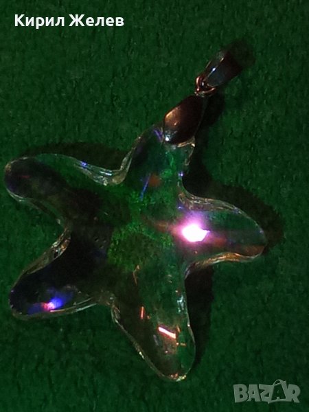 КРАСИВА КРИСТАЛНА ЮВЕЛИРНО ФАСЕТИРАНА ЗВЕЗДА Арт МЕДАЛЬОН с 18KGP БЯЛА ПОЗЛАТА на ОБКОВА 32365