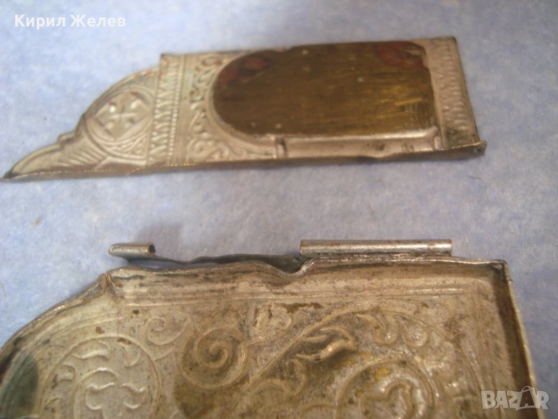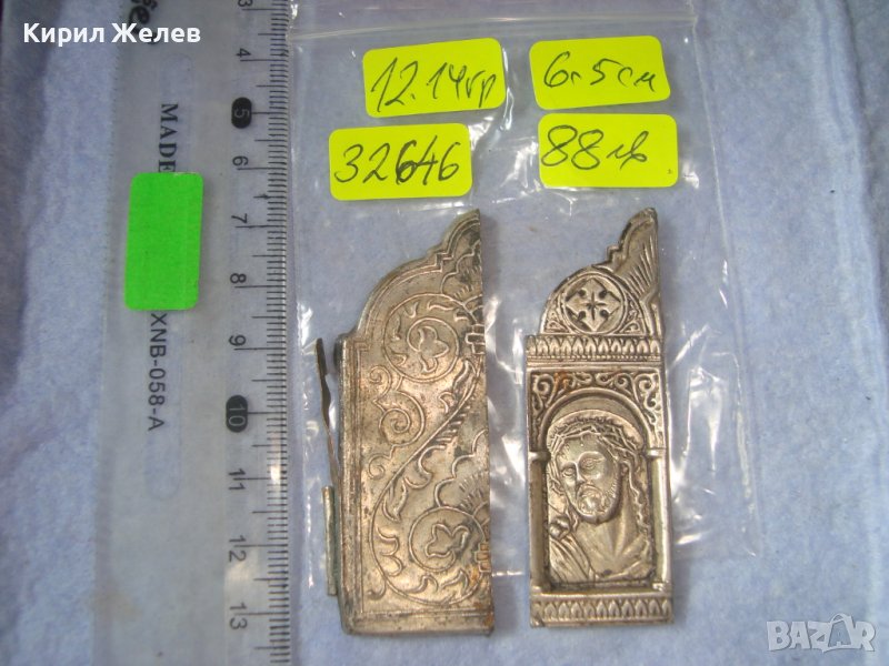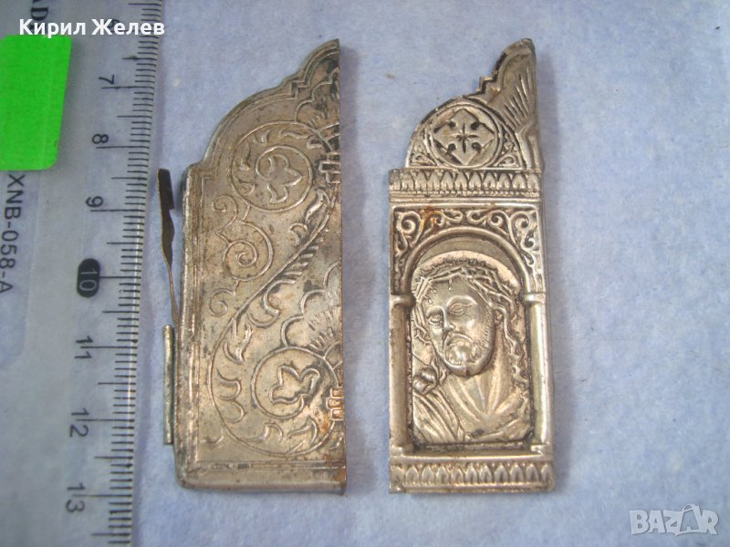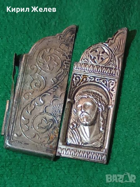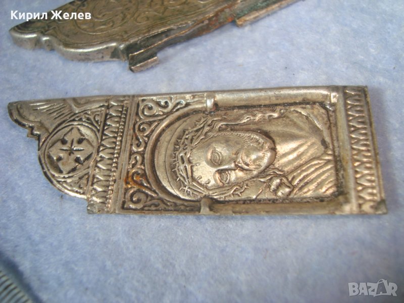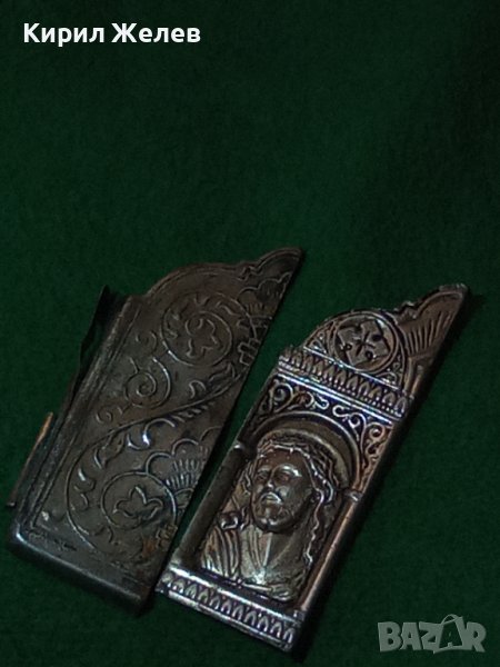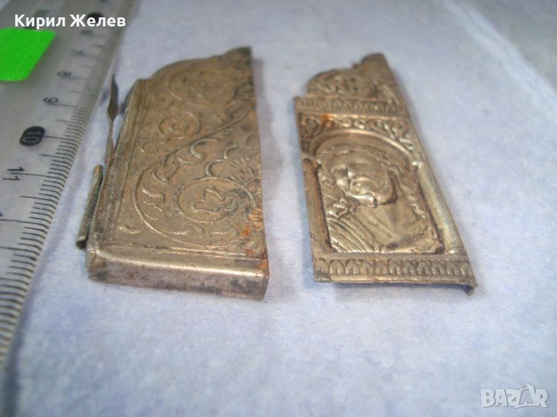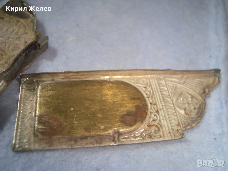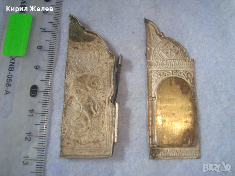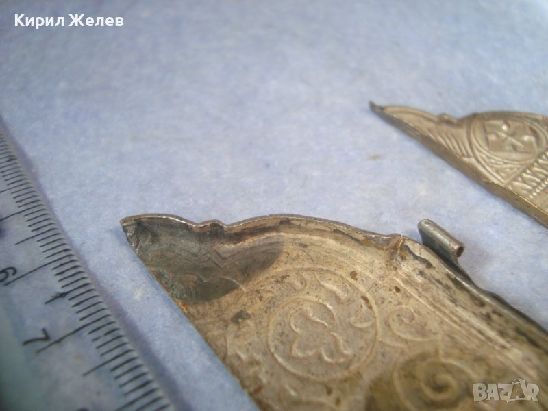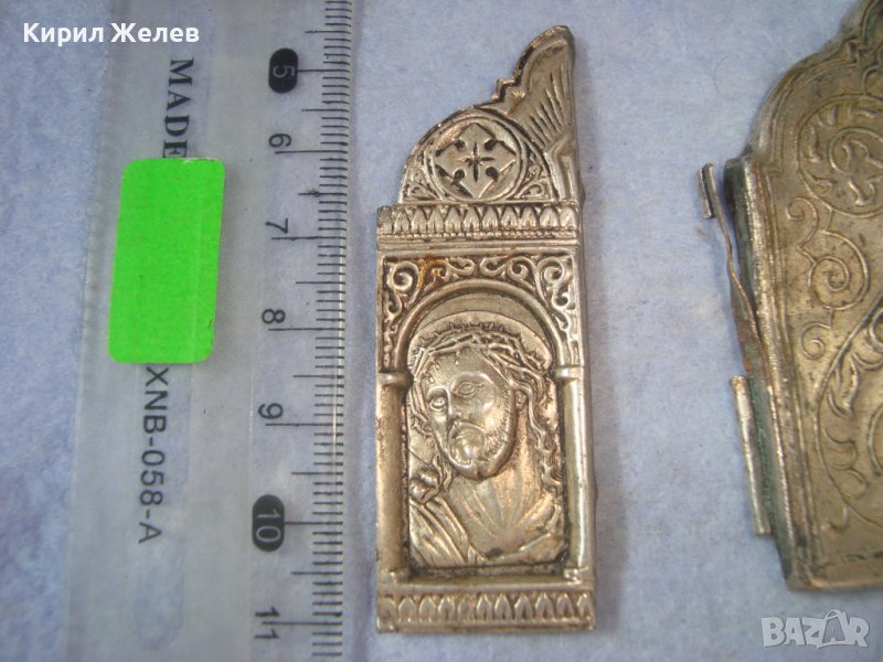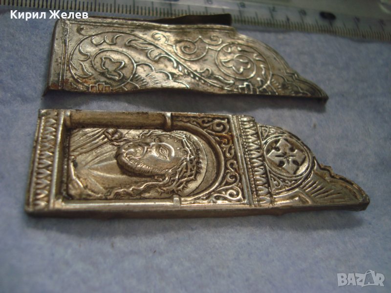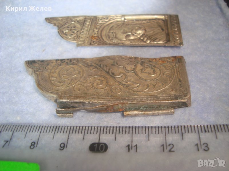 ДВА СТАРИННИ ПОСРЕБРЕНИ БРОНЗОВИ РЕДКИ ЕЛЕМЕНТА от ОБКОВ на ИКОНА ИКОНКИ РЪЧНА ИЗРАБОТКА 32646