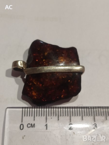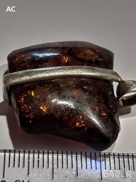 Много стара висулка от естествен червен кехлибар и сребро, не обработван с всички печати за автентичност