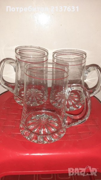 3 броя СТЪКЛЕНИ ХАЛБИ с дръжка