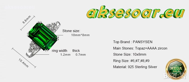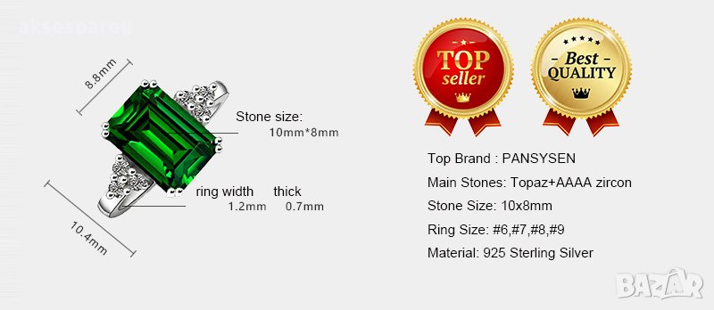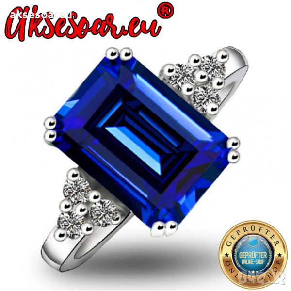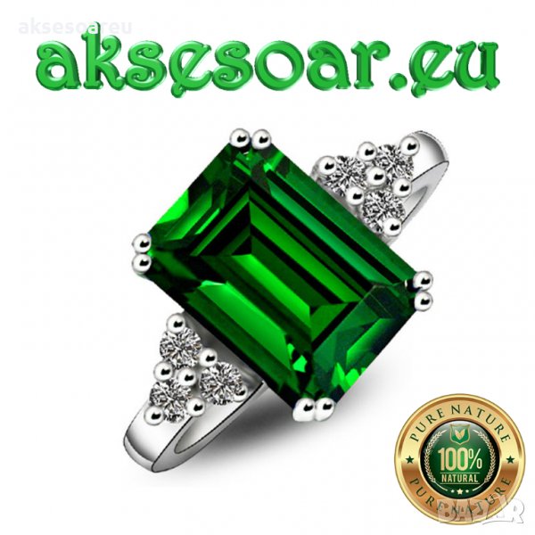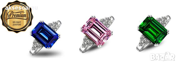 Пръстен със стерлингов зелен син камък сапфир 925 сребърен посребрен за жени годежен изумруден за момичета скъпоценни