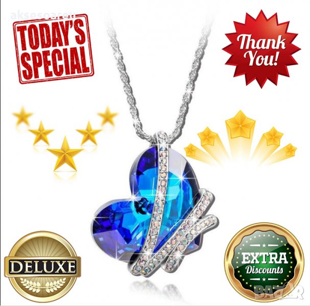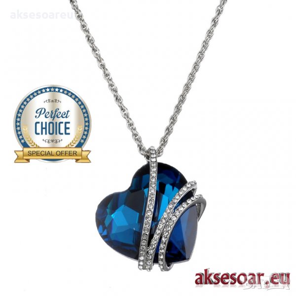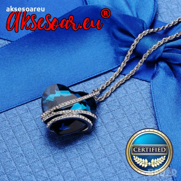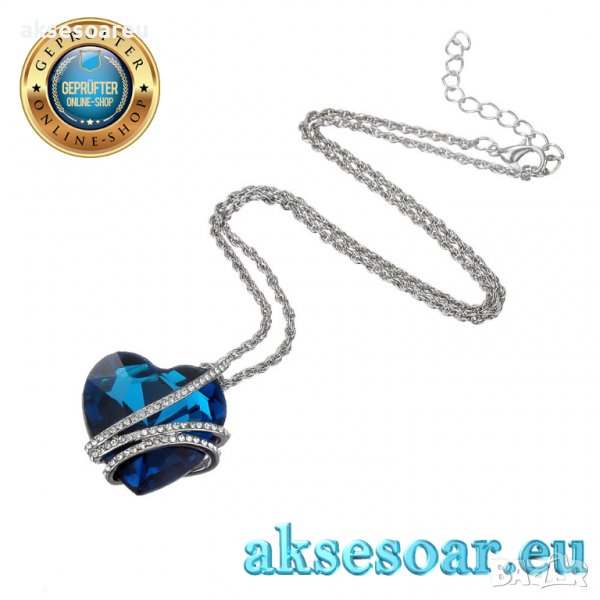 Дамско колие с висулка романтично чаровно синьо сърце