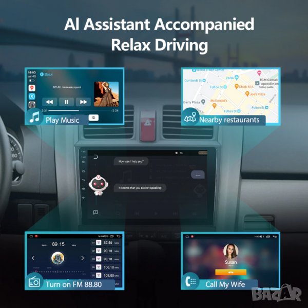 Поддържа всички навигации, съвместими с Android: IGO, WAZE, GOOGLE Maps и други