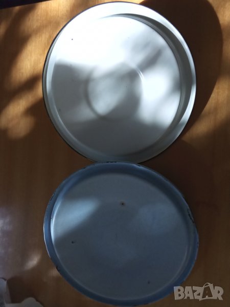 Бялата тенджерка предлагам за 9лв. Синята тенджерка е продадена, а бялата е с размери вътрешен диаметър 18см и дълбочина 8,4см.