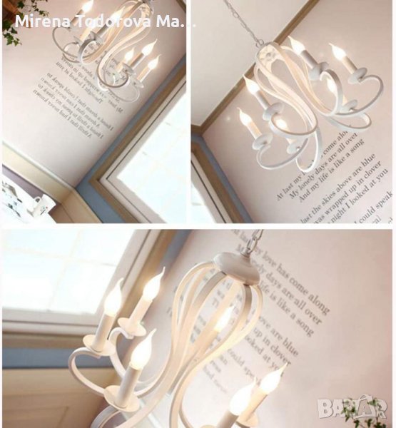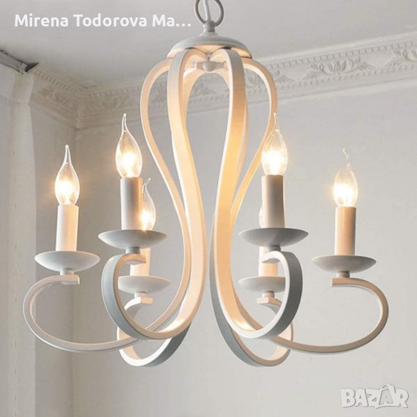 Антична висяща лампа Полилей 6 пламъка Железен свещник Регулируема височина Бял Скандинавски Винтидж за хол Спалня Трапезария Кухненски полилей Бял