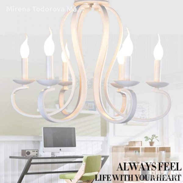 Дизайн на външния вид: Европейски креативен прост полилей от свещи, елегантен полилей в кънтри стил. Дизайнът е изработен от метал и е оборудван с 6 дръжки във формата на свещ на 6 отделни извити рамена.