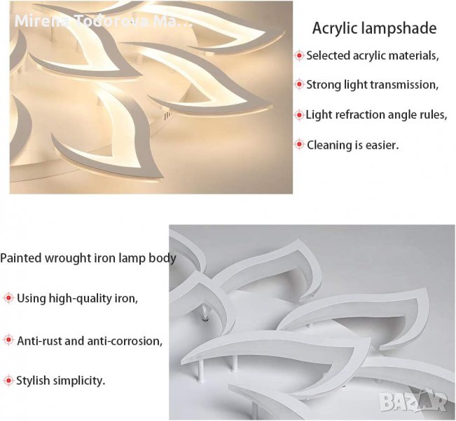 Избрано ковано високопрецизно акрилно коване, изящно и елегантно, меки и дори дифузни светлинни линии, изящно и очарователно. Вграден LED източник на светлина с високо цветопредаване, ниска консумация на енергия за създаване на комфортна и екологична осветителна среда; висококачествени материали. Изработен от висококачествен алуминий и акрил, той има свойствата на устойчивост, устойчивост на корозия, устойчивост на избледняване, не е лесен за надраскване и лесен за почистване