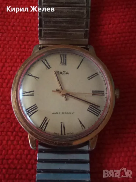 SAGA GREAT BRITAIN WATER RESISTANT Стар АНГЛИЙСКИ ПОЗЛАТЕН МЕХАНИЧЕН ВИНТИДЖ ЧАСОВНИК РАБОТЕЩ 31485