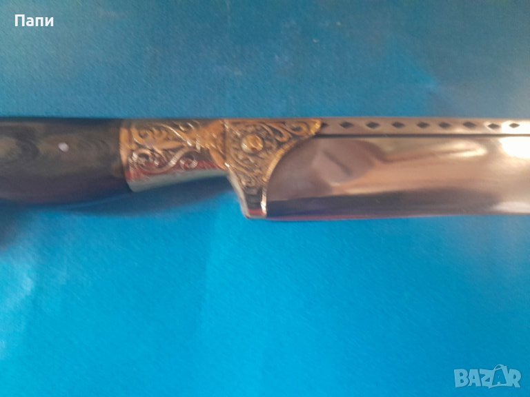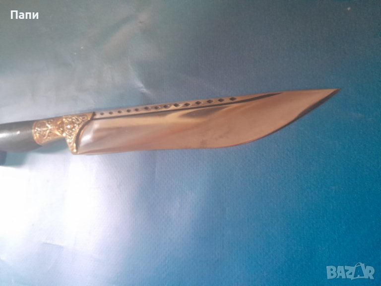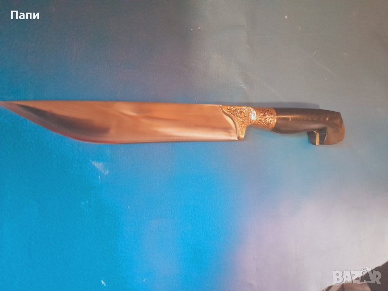 Дръжката е от биволски рог и бронз. Д/30 см.ширина на острието 3 см.
