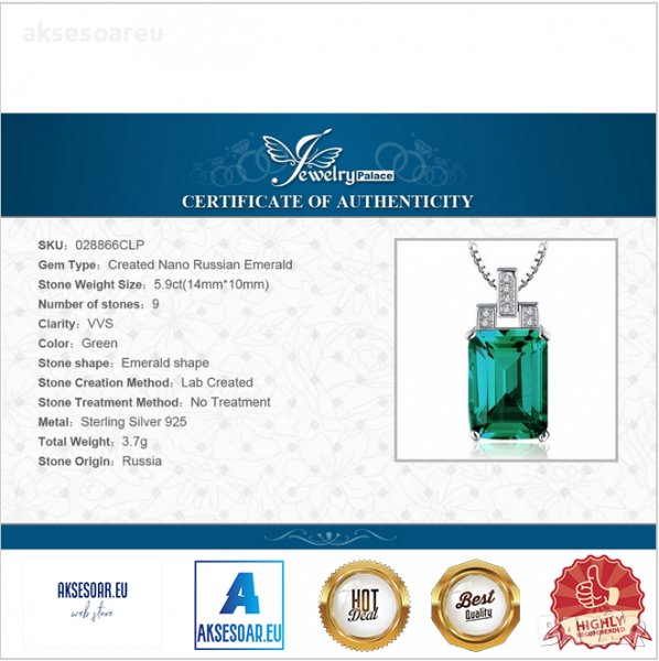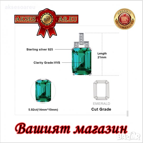 Модна сребърна висулка със зелен камък Бижута Палас Смарагдов камък колие модни бижута за подарък за