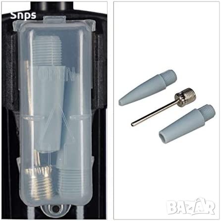 Практично: малък контейнер с 3 адаптера за клапани - държач за маркуч за пестещо място съхранение