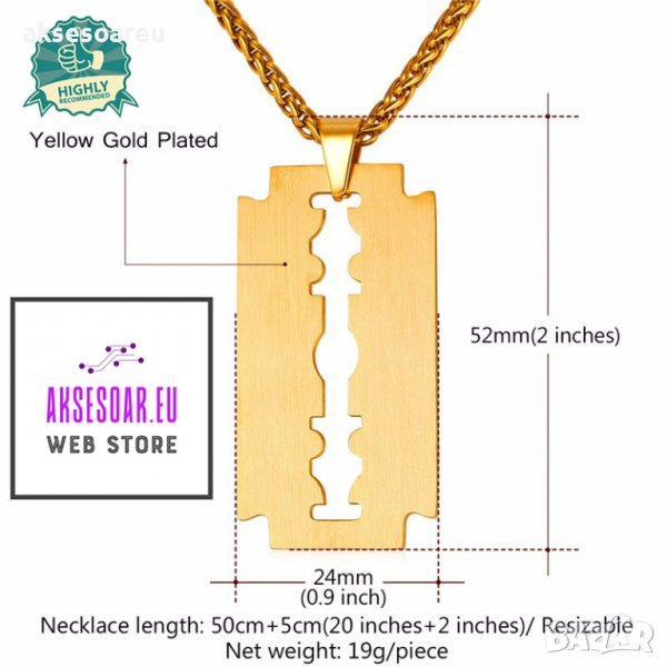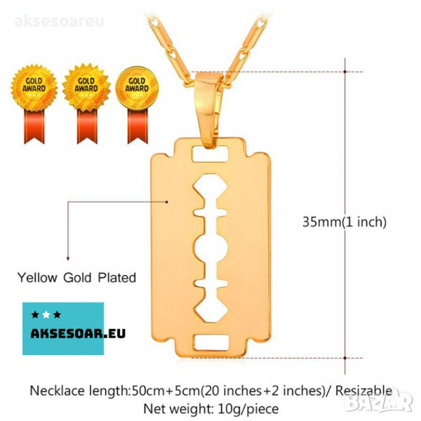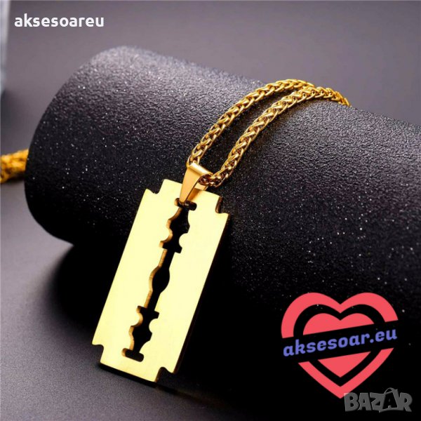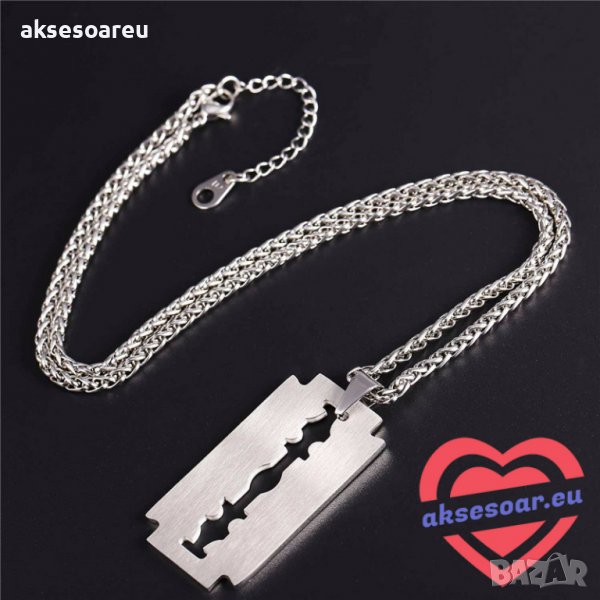 Колие бръснарско ножче от неръждаема стомана бръснач медальон бижута