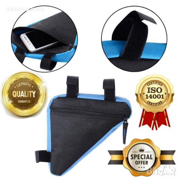 Чантичката е подходяща за закачане на предната рамка на велосипеда при
