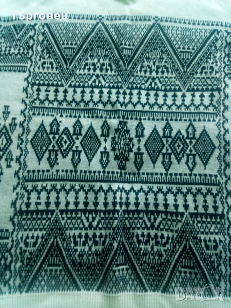 Пуловера е неразличим от нови и е унисекс, може да се и от по слаб мъж. Цвета е снежно бял с черни шарки от пред и на гърба.