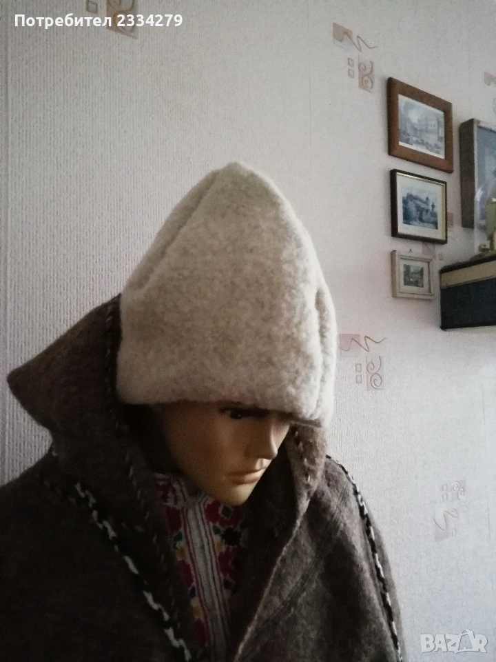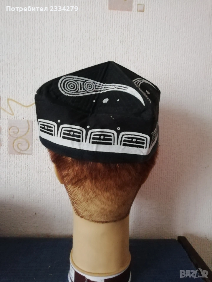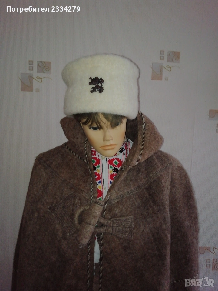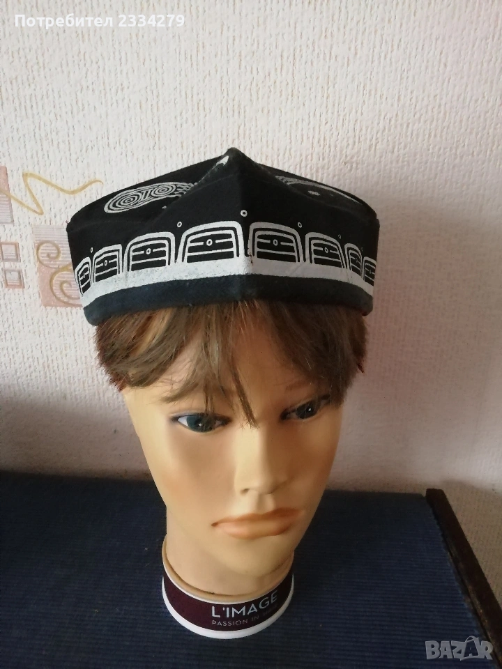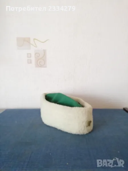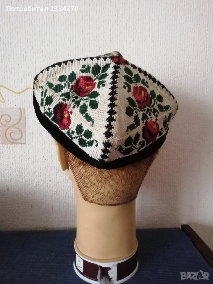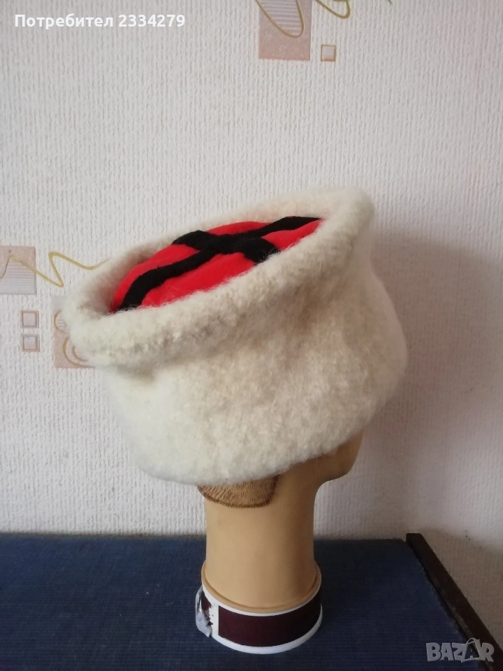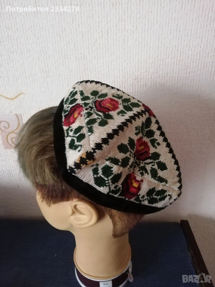 N:1 ФЕСОВЕ турски шапки,неизползвани 2 броя различни номера,изработени от кадифе и ширити, цена 10€. брой.; N:2 Шапка, опълченски калпак с лъвче, неупотребявана с цена 20€ ; N:3 калпаци от чиста вълна с цена 15€.; N:4 децко калпаче с лъвче от соца, цена 10€.; N:5 шапки,, ТЮБЕТЕЙКА" оригинални бродерия и орнаменти от всички страни,цена 7€. брой.