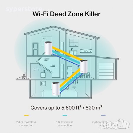 WiFi обхват Къщи с 3-5 спални (пакет от 3) TP-Link Mesh технология