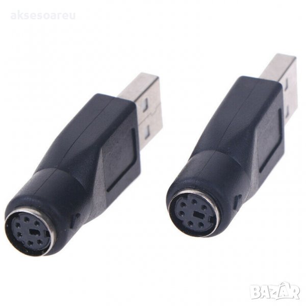 Преходник 2 бр PS / 2 мъжки към USB женски порт адаптер конектор за компютърна клавиатура мишка лапт