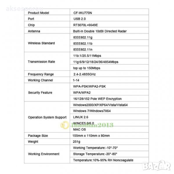 Характеристики на безопасност: 64/128/256-битово WEP криптиране, поддръжка на