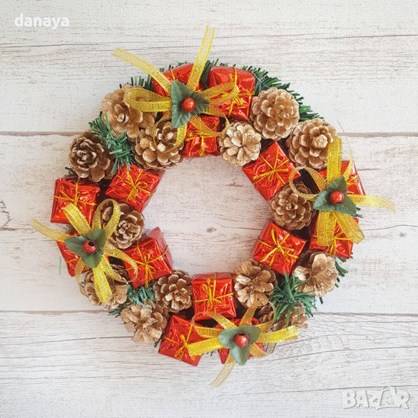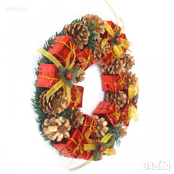 3190 Красив коледен венец с шишарки и подаръчета, 20 см → Обява 38405200