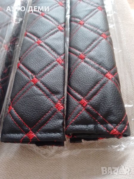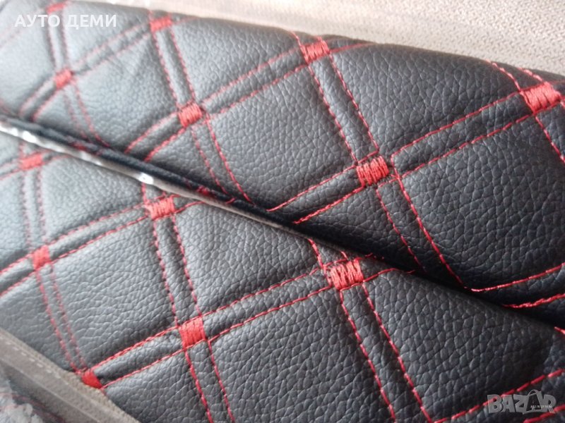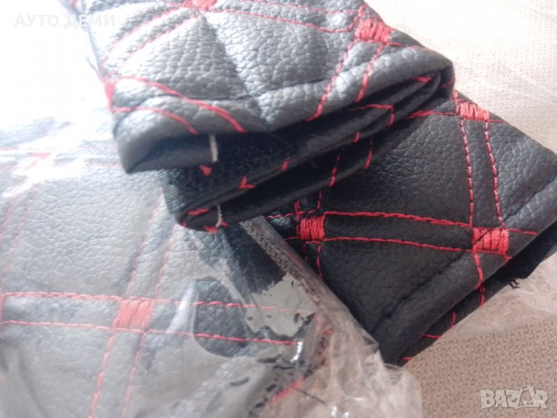 Кожени протектори с червен конец бродерия на ромбове за колан на кола автомобил джип ван камион