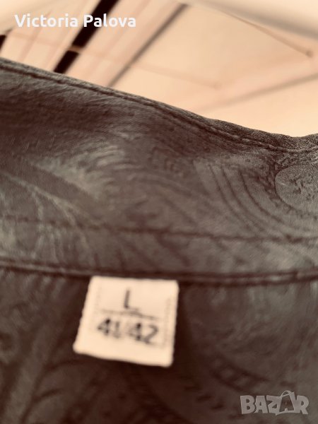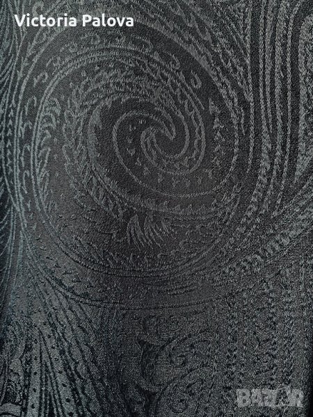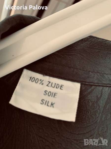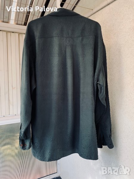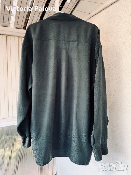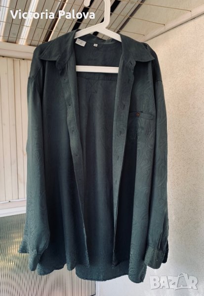 Ризата е много красива,особен, рядко срещан цвят-опушено зелено,материята е текстурирана коприна,не се мачка.рамене-58см,ГО-64см,дължина отпред-80см,отзад-86см,ръкав-64см.
