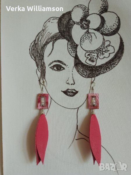 Розови обици от естествена кожа със седеф модел → Обява 38409206