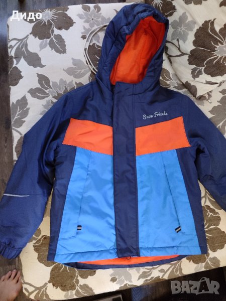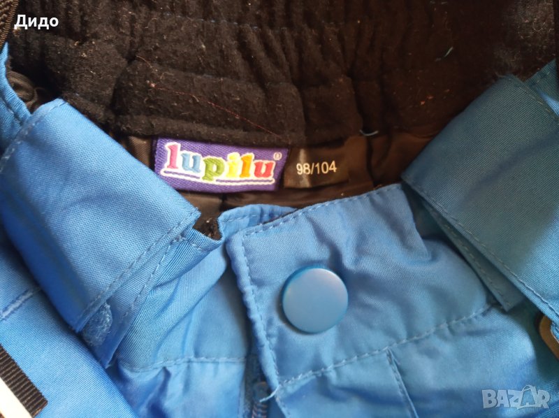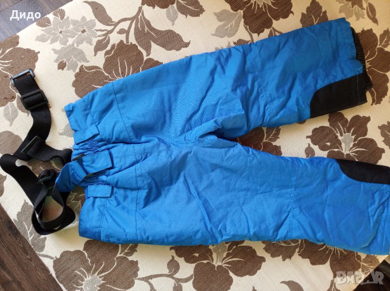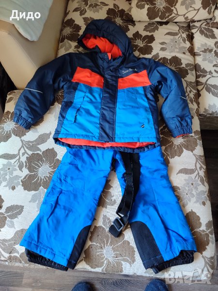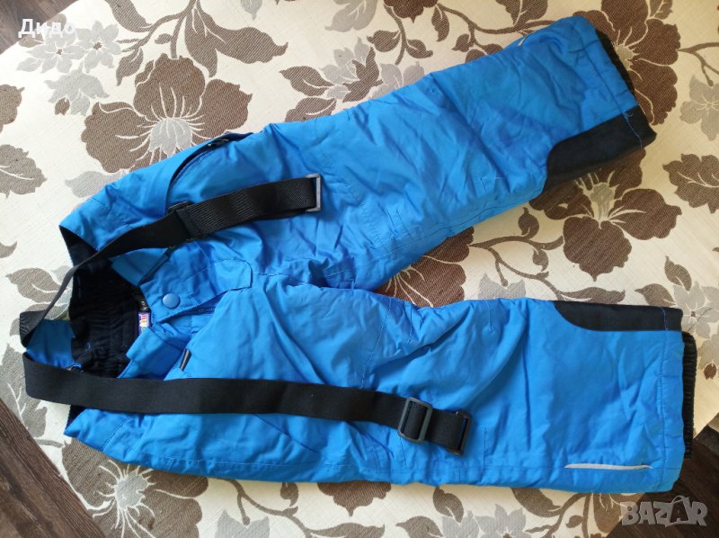 Ски панталонът е с размер 98/104, а ски якето е с размер 100/116.