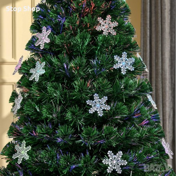 Коледна елха, изцяло украсена с оптични влакна и цветни LED светлини 180см