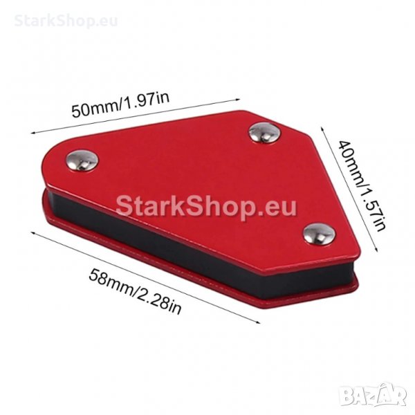 Мощен магнит, занитен в стабилно стоманено тяло. Устойчив при работа под ъгъл 45°, 90° и 135°. Използва се при заваряване или запояване на черни метали – за позициониране на детайлите без придържане с ръце.