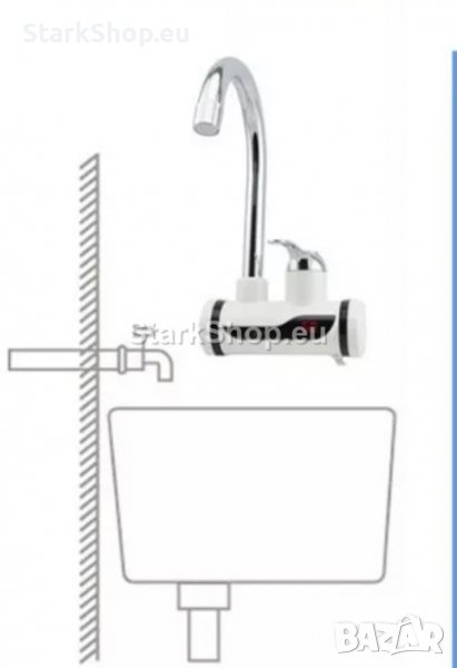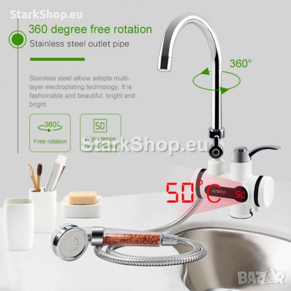 Смесителна батерия бойлер за чешма с турмалинов душ за стена за хоризонтален монтаж и подвижна душ слушалка. Мощен 3000W нагревател за стена.