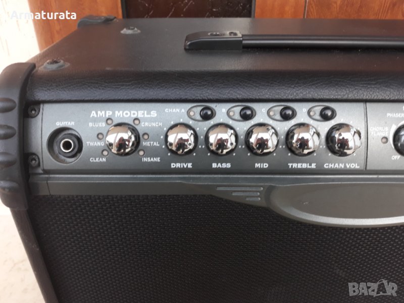 Продавам усилвател за китара Line6 Spider II 112, в комплект с футсуич за него. Усилвателя е 75W, с 12 инчов говорител, с вградени ефекти и симулации на различни усилватели.
