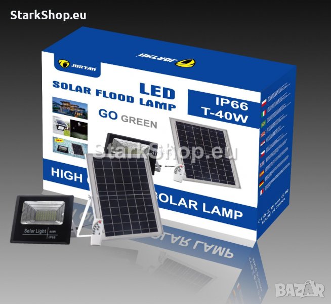 Изключително мощна соларна лампа 150W тип прожектор със отделен соларен панел и ярка LED светлина. Захранва се от слънчева и дневна светлина посредством фотоволтаичен панел. Той преобразува светлинната енергия в електрическа, зареждайки акумулаторна. Щом се стъмни, светлинен сензор активира светлината на лампата автоматично. Прожектора може да осветява в продължение до 8-12 часа в зависимост от режима.Соларния панел е отделен от лампата и се свързва към нея посредством 4.4 метров кабел.