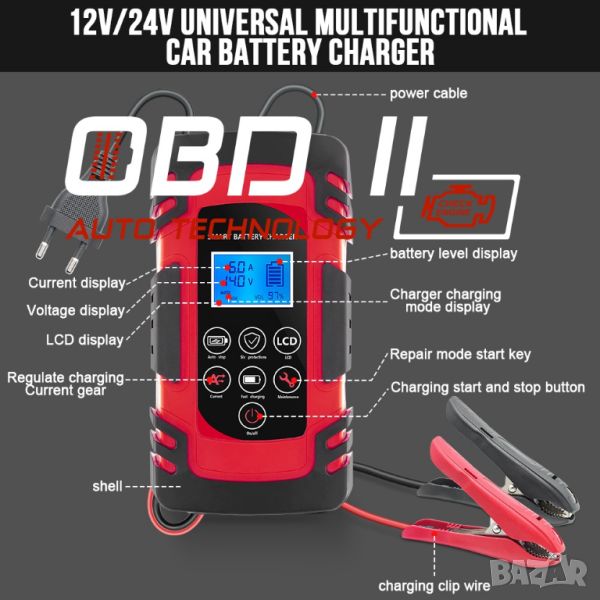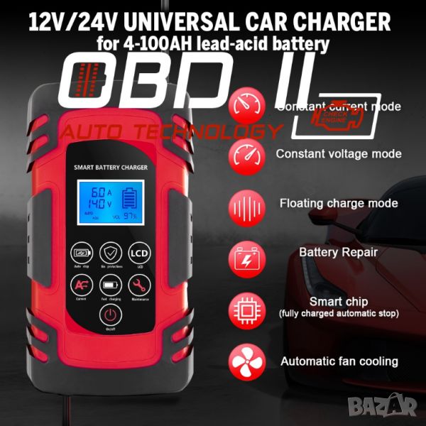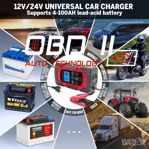 Смарт Зарядно 4AH - 100AH Smart Charger 12V/24V Безплатна доставка