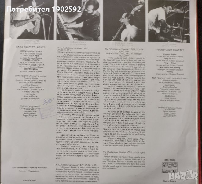 Джаз Квартет "Фокус" ВТА 11676 → Обява 38422787