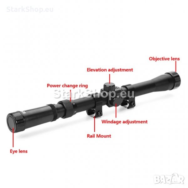 Оптичен прицел – оптика 3-7×20 с променливо увеличение от 3 до 7 пъти и с диаметър на обектива – 25мм. Подходяща за въздушна пушка с нормален откат. Диаметър на тръбата 20мм. Оптиката е с просветлени лещи.