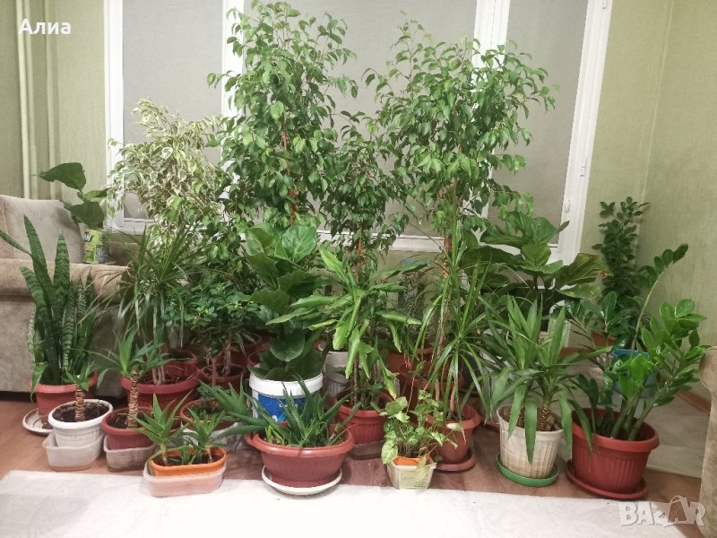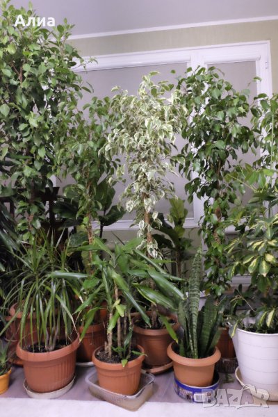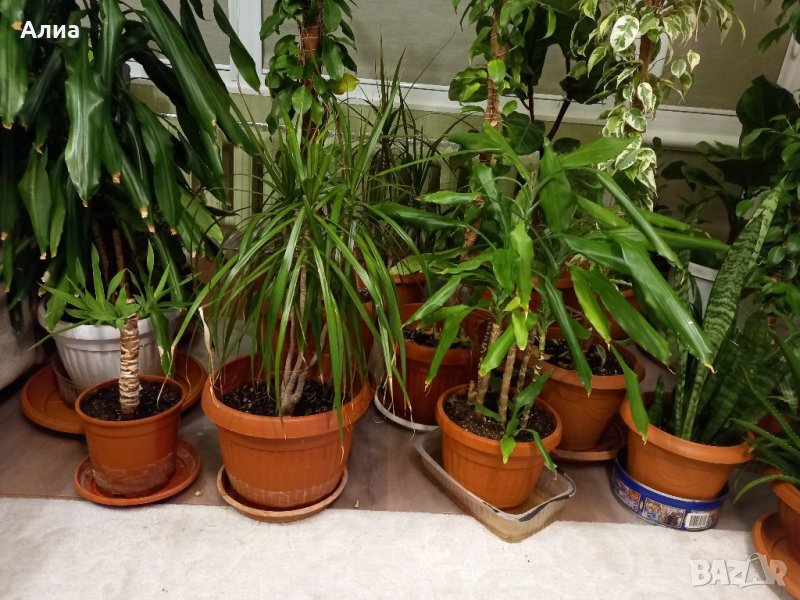 Драцена 5 корена 42лв, юки от 30-35лв., шефлера- няма, сансавиера голяма- няма, малка 50лв, алое малко 5 корена 29лв., голямо 45лв. Голям фикус бенджамин- няма