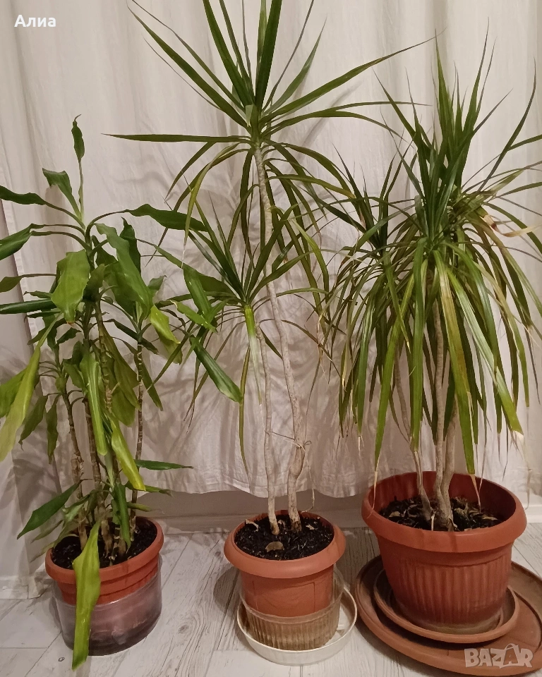 Драцена 5 корена 22 еur, юки от 15-17eur., шефлера- няма, сансавиера 33eur, алое малко 5 корена 16eur., голямо 30eur. Голям фикус бенджамин- няма