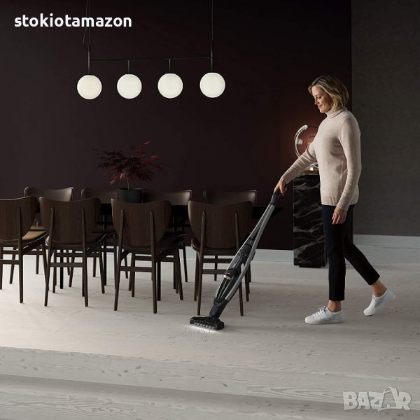 Прахосмукачката остава изправена сама, така че можете лесно да я оставите навсякъде по време на почивка.