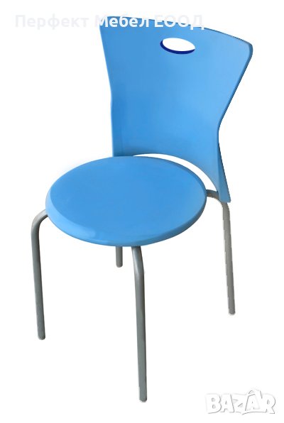 Прекрасе стол с кръгла седалка и интересна облегалка.Полипропилен и метални крака.Налични количества на склад с бърза доставка до 3 дни.