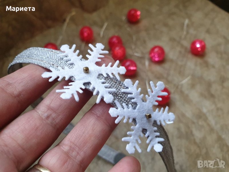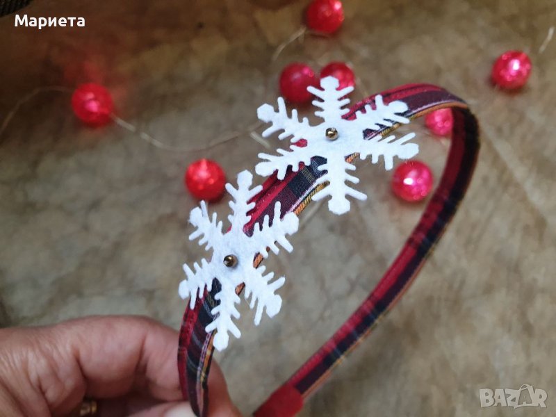 Диадеми със снежинки Сребърна диадема Червено Каре Коледна Диадема Аксесоари Коледен венец за глава → Обява 38435804