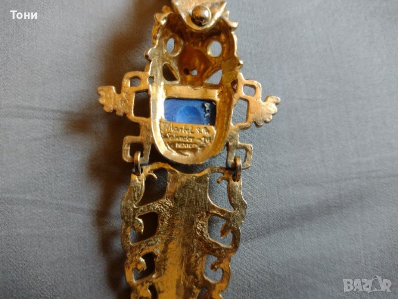 Салвадор Теран за Marbel of Mexico Ацтекско керамично колие с висулка / златна ретро висулка, произведено в Мексико