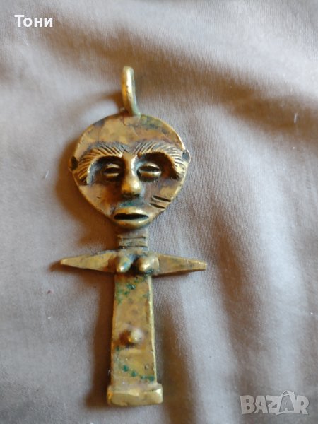 Дискообразната форма на главата и високото овално чело на изложената фигура въплъщават класическия идеал за физическа красота на Акан културата. Очите са подчертани от деликатно изваяните аркообразни вежди, плавно преливащи в линията на носа. Кръглите пръстени около издължения врат на фигурата са стандартна практика за обозначаване на тлъстини, считани като признак за здраве и благоденствие. Деликатно моделираните устни са малки и ниско разположени на лицето.