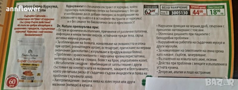Възпаленията в тялото са една от най-честите причини за развитие на опасни здравословни проблеми. Осигурете на организма си сигурна защита с Dr. Nature Супер Куркума – ефективна хранителна добавка с патентован куркувин (Curcuwin), уникален за българския пазар. Доверете се на силата на „златната богиня“ куркума, която притежава мощен ефект срещу действието на свободните радикали и съдейства за цялостната детоксикация на тялото, подпомага ставите, подсилва имунитета, стимулира настроението.