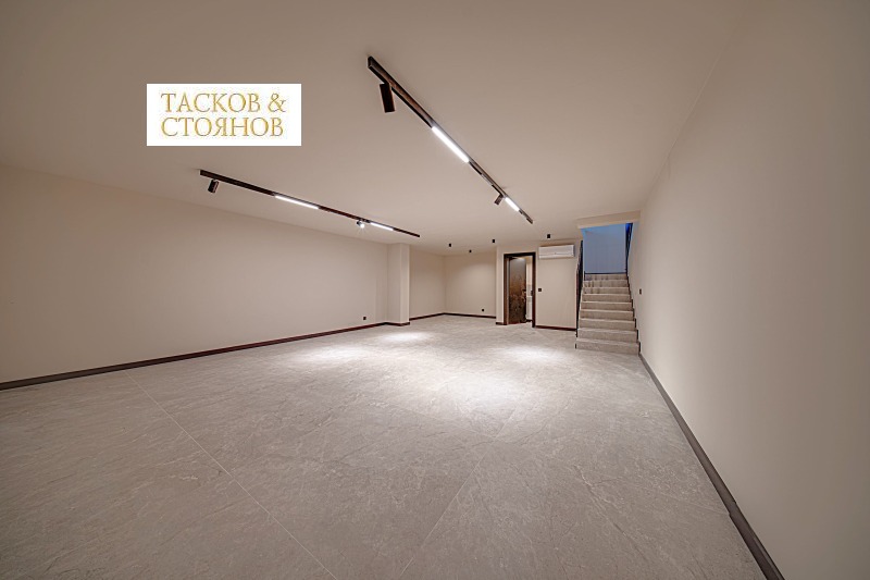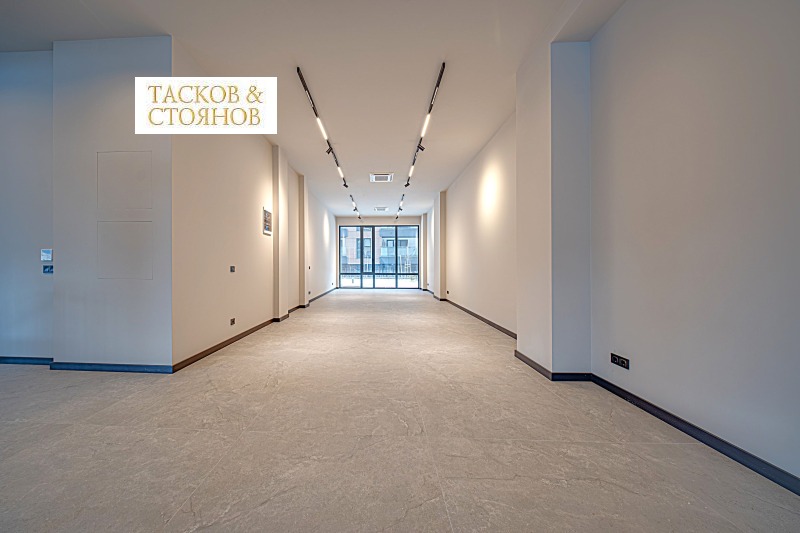 Предложеното търговско помещение с обща площ от 153.19 кв.м. (нетна площ 129.67 кв.м. + общи части 23.52 кв.м.), на партера на сградата. Витрината е с лице към улицата и собствен вход откъм улицата. Разполага със собствен санитарен възел.