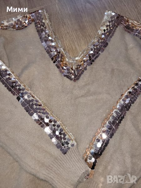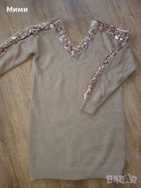 Нов бежов ефектен пуловер туника. Изключително мек и приятен на допир. Универсален размер.
