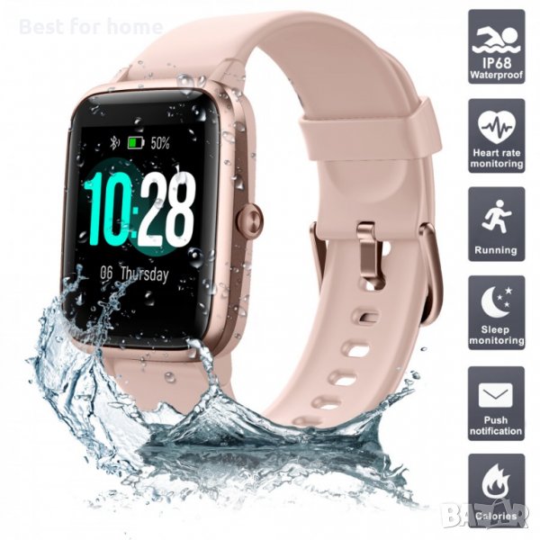 Смарт часовник SYNCLIFE 205L, работещ с приложение VeryFitPro, водоустойчив - IP68, за спорт и ежедневие, голям цветен дисплей с висока резолюция, Розов със златиста рамка