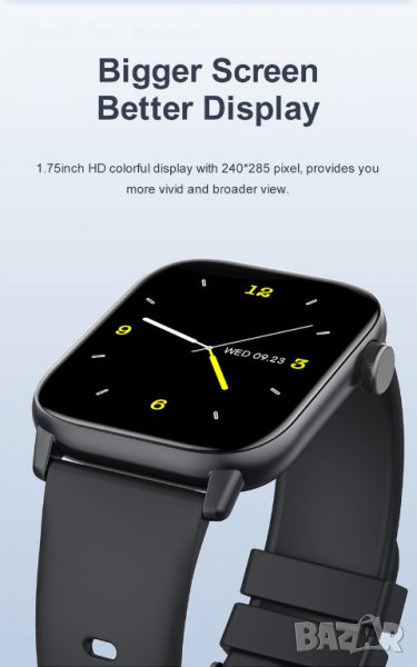 - Голям циферблат и хуманизирани функции: Нашият 1,75-инчов цветен сензорен екран прави операцията лесна и можете лесно да преглеждате подробни отчети с данни на него или на телефона си с APP. Плюс разнообразие от препоръчани циферблати и DIY циферблати са удобни за показване По-практични инструменти, като будилник, таймер, камера и музикален контролер, регулируема яркост и т.н. Ние се ангажираме да работим с вас, за да създадем по-здравословен, по-активен и по-удобен начин на живот.