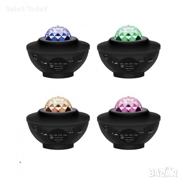 Осветление - led стаен проектор с управление. Има нощна лампа, приятно осветление, прожекция на океански вълни, вечеря под звездите, парти светлина, декорация на игрална зала и др. Работи с 2 батерии AAA (не са включени).