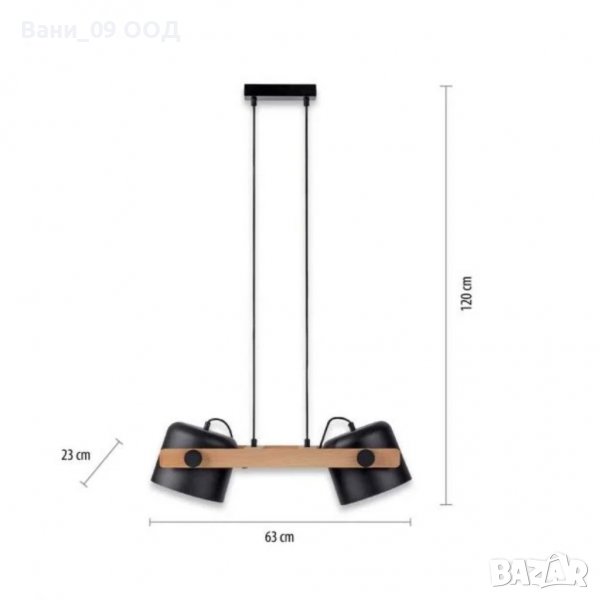 Пендел 2X60W E27, метал и дърво, два подвижни метални корпуса.