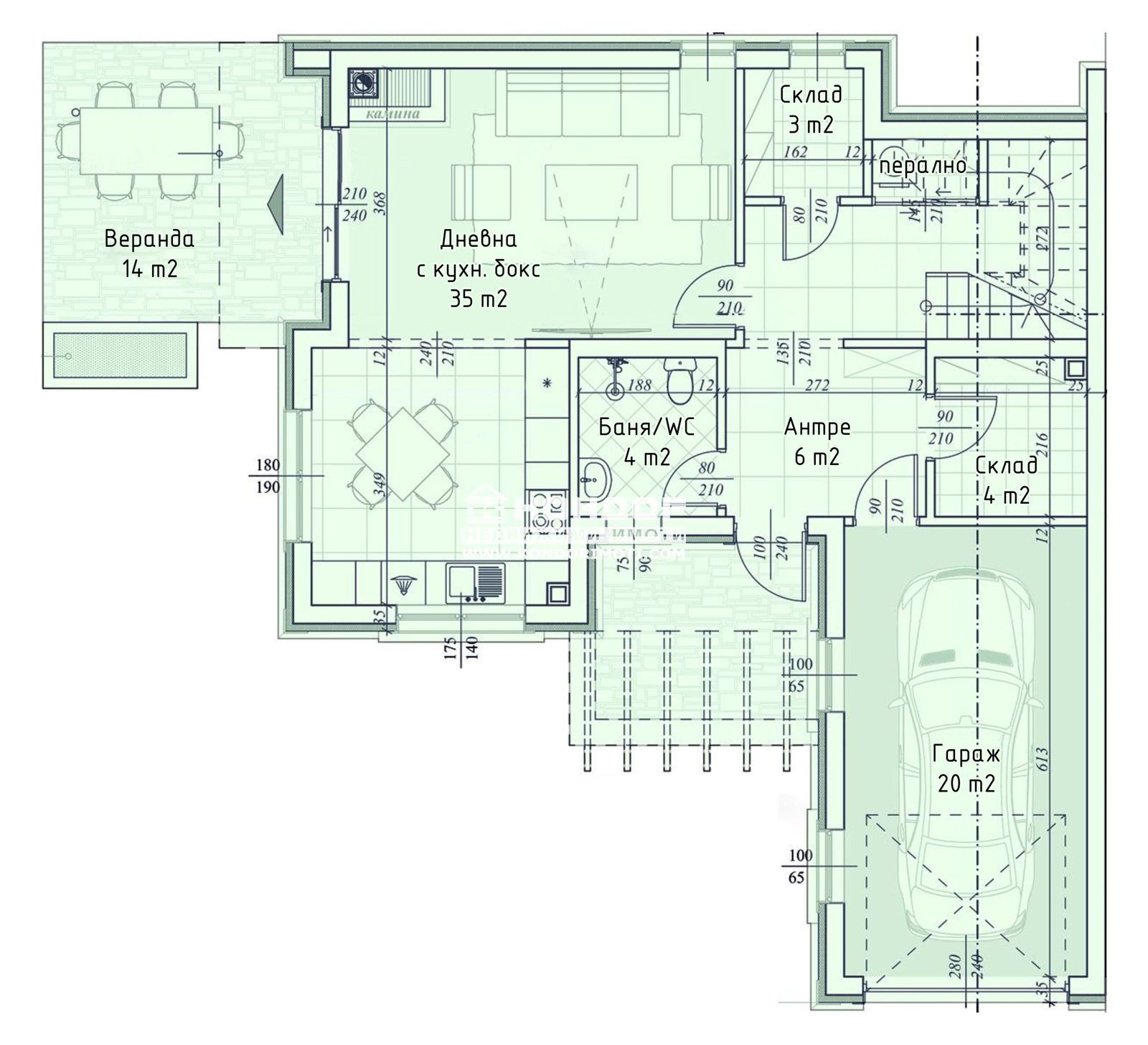 Оферта 60074: СТРАХОТНА ЛОКАЦИЯ ! АСФАЛТОВ ПЪТ ! КАНАЛИЗАЦИЯ ! Предлагаме на вашето внимание ПРЕКРАСНА ЕДНОФАМИЛНА КЪЩА в с. Първенец на страхотно място на асфалтирана улица с канализация и водопровод с квадратура от 291кв.м . Имота се строи в самостоятелен парцел от 350кв.м. като остава страхотен двор за допълнителен комфорт и уют на новите си собственици !!! В строителството на тази изключителна сграда се използва най-качествените материали, сертифицирани по европейски стандарти. Разпределение първо ниво : широко входно антре, просторен хол с кухненски бокс и трапезария от 32кв.м., килер , баня с тоалетна , гараж с топла връзка към къщата и прекрасна веранда. Второ ниво : голяма родителска спалня с баня с тоалетна и тераса , още две спални с една баня и тоалетна и прекрасна тераса . В къщата е осигурен достъп чрез таванска стълба от втори етаж до под покривното пространство и височина в най-високата точка от 250 см, което може да се ползва като допълнително складово помещение или за други нужди по усмотрение на собствениците !!!